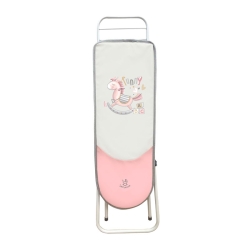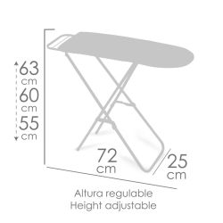 Ta składana prasowalnica wykonana jest z wysokiej jakości aluminium, lekkiego i bardzo wytrzymałego w białym kolorze. Górna tkanina centrum prasowania jest o dużej odporności w kolorze różowym zgodnie z linią Funny.