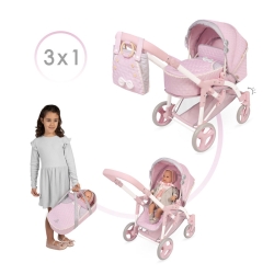 Najfajniejsza zabawa i nieograniczone możliwości zabawy z najmłodszymi, ich lalką i tym pięknym składanym samochodzikiem dla lalek Sophie 3x1 firmy DeCuevas. Wózek pełen najwyższej jakości detali, takich jak kokardki, guziki i inne, idealny do nadania odrobiny realizmu najbardziej kompletnej i kreatywnej grze w naśladownictwo dla najmłodszych w domu.